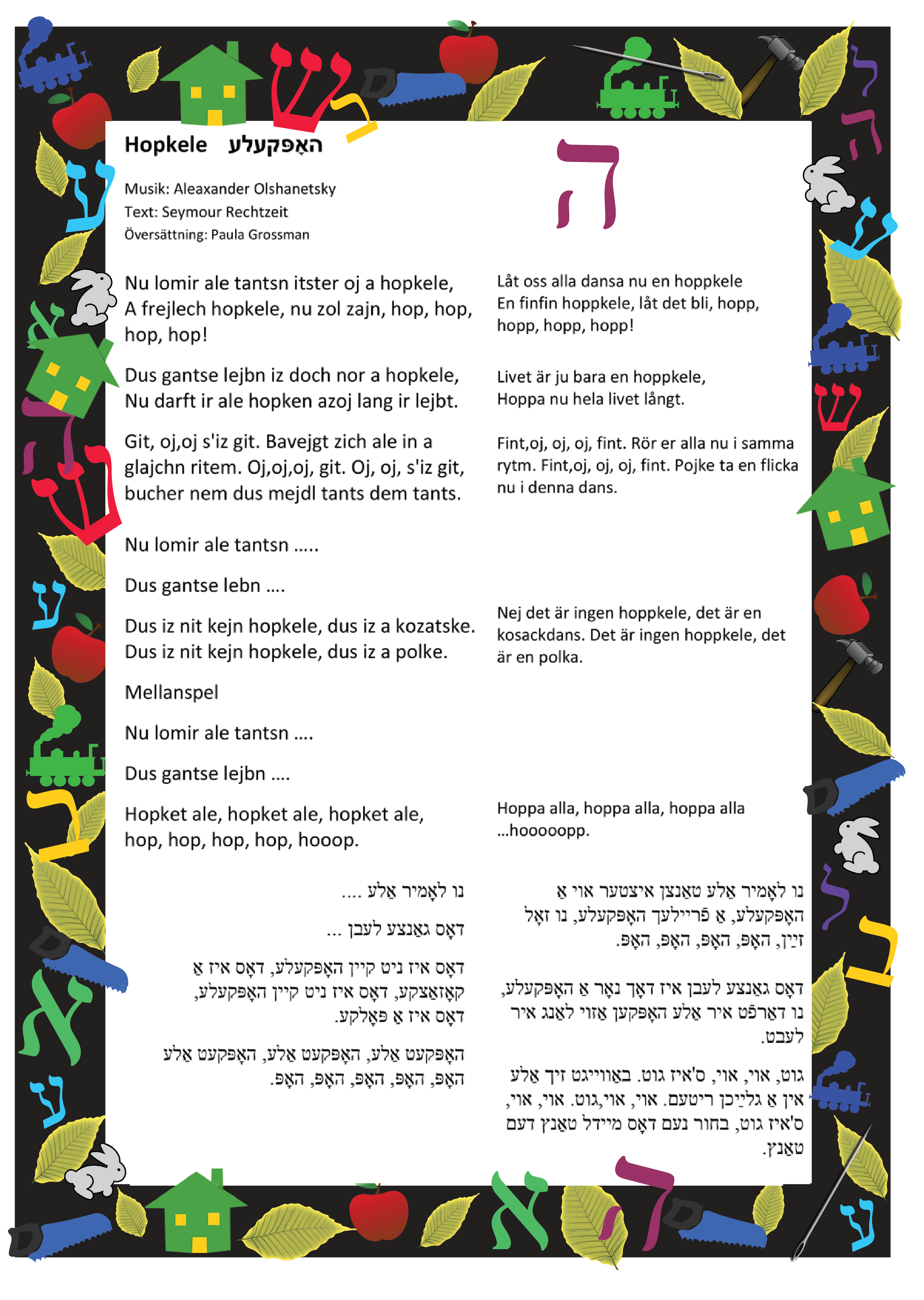 Denna hopkele är skriven av Seymour Rechtzeit (sångare och skådespelare) som kom som ung till USA 1920. Han var redan då, 12 år gammal, talangfull och engagerades sedermera av teatrarna på Second Avenue.